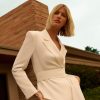 Lustrous satin crepe makes up this classic blazer offering endless sophistication. Sharp tailoring and double-breasted buttons create a cinched silhouette, while classic notched lapels and flap pockets add a traditional touch. Style this blazer with co-ordinating tailored trousers for a powerful ensemble, or size up for a contemporary, oversized aesthetic.